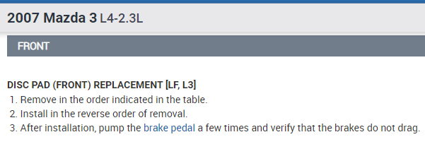 DISC PAD (FRONT) REPLACEMENT [LF, L3]