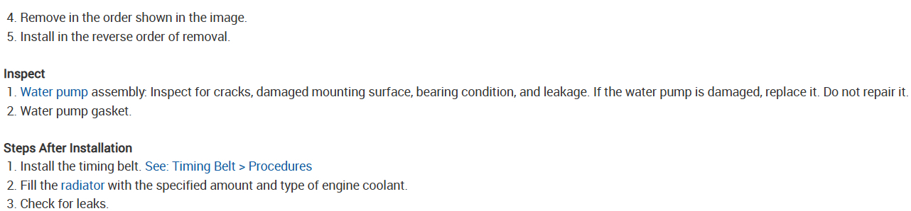 The water pump is behind the timing belt cover and you will need to remove the timing belt as well so you might as well replace it. Check out the images (below). Let us know if you need anything else.