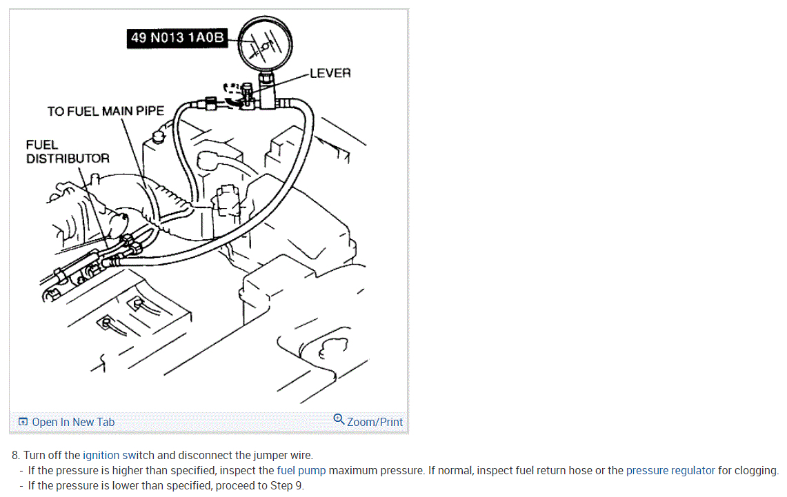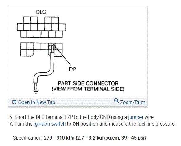 If you look at the attachments below, they provide the directions specific to your vehicle. Additionally, they include the manufacturer's fuel pressure specifications.