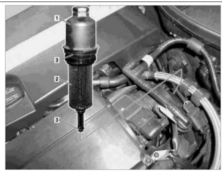 The oil filter is located near the rear of the engine up top intake side. Here is a video of an intake job being done so you can see the oil filter.