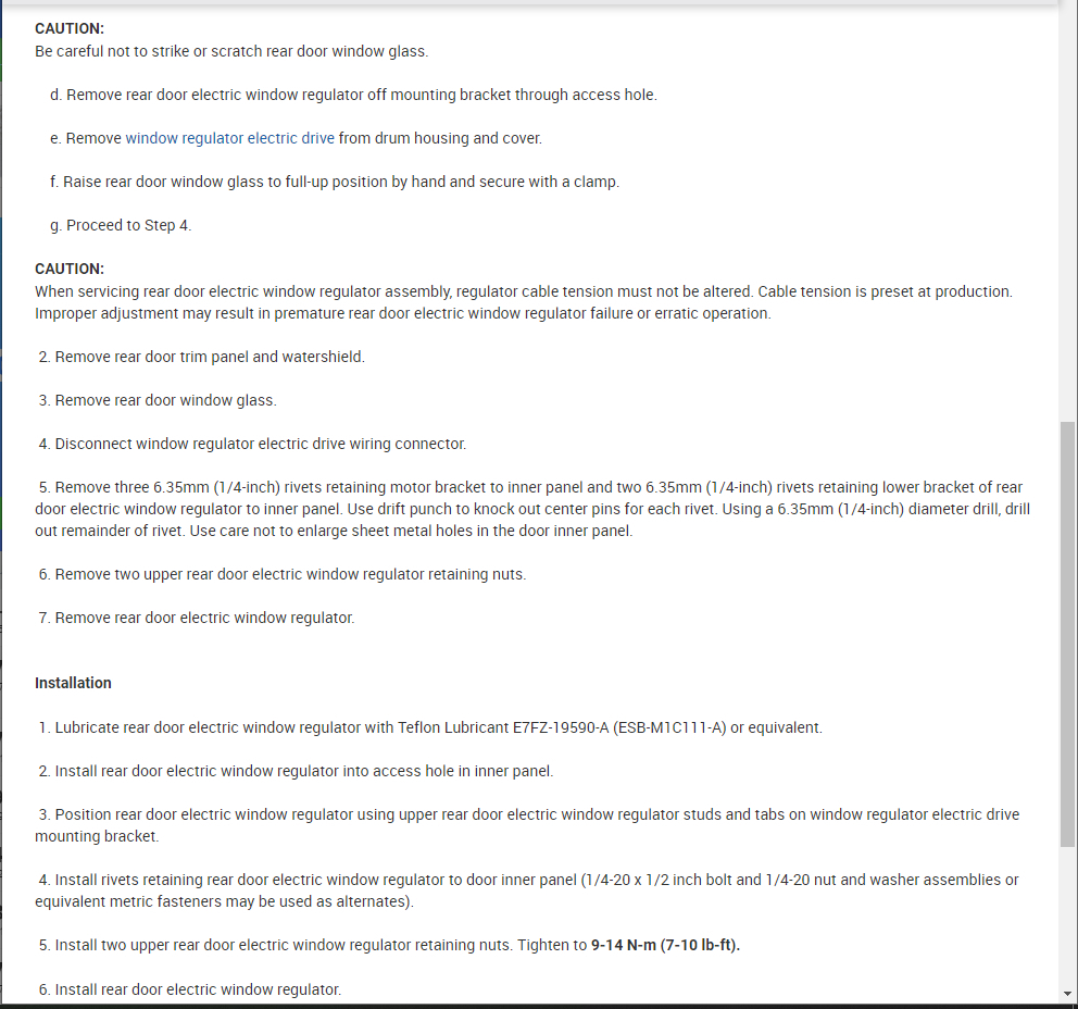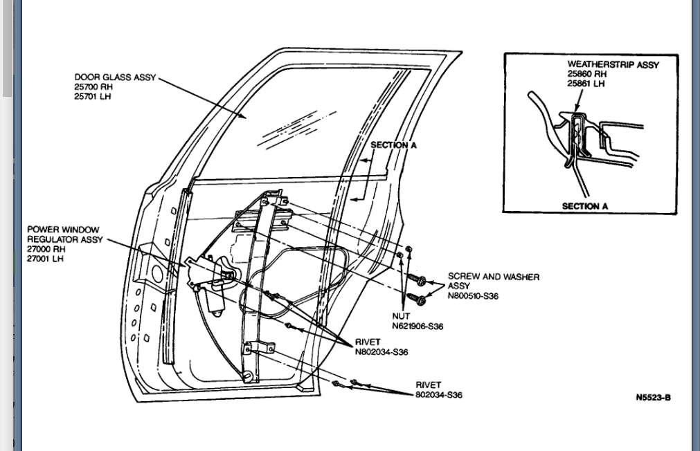 I have a 1995 Mercury grand Marquis G.S. With 175kmiles and 4.6 liter engine. I have the Mercury shop manual for it but it is not clear on how to remove the rear window glass in order to remove the regulator.I have replaced the two front regulators and the glass just slips out easily on those. The rear one is different.