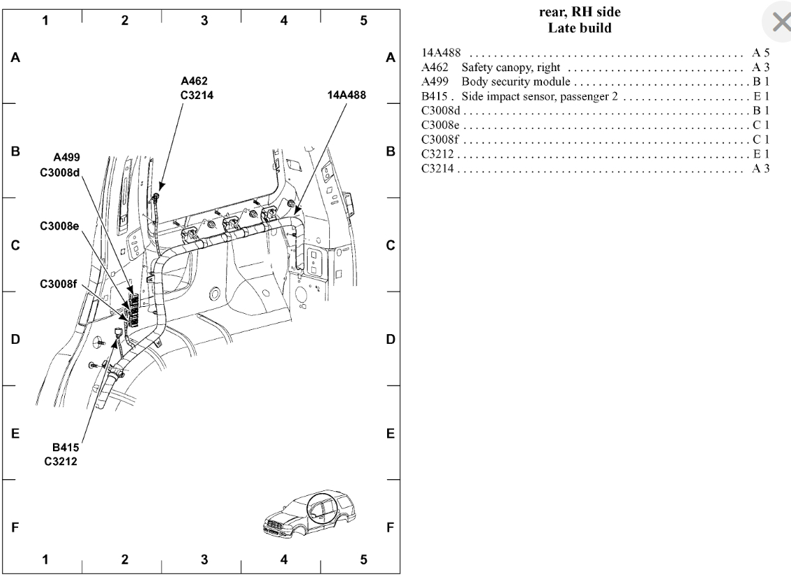 That module is located inside the panel of the rear passenger side cargo area (see diagram).