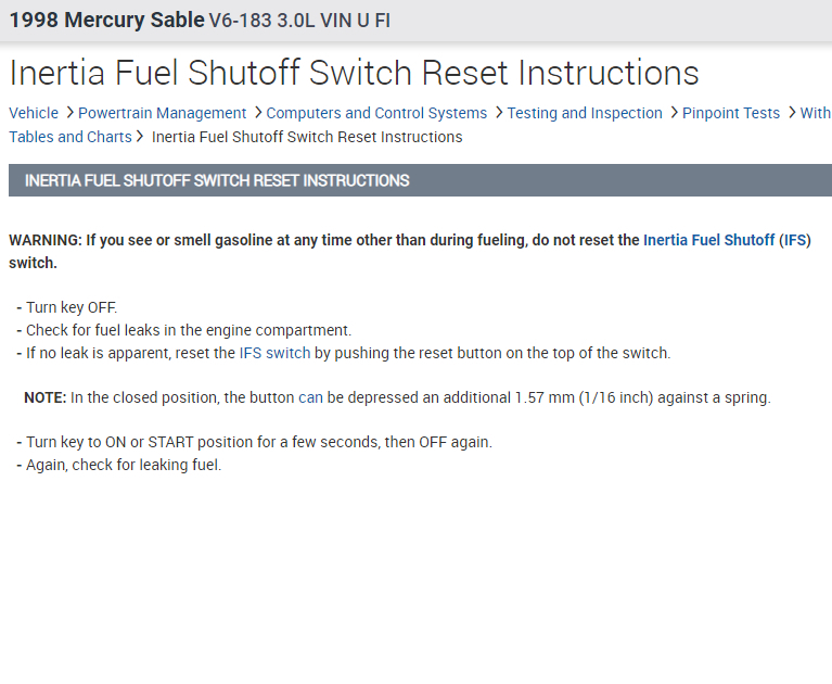 This vehicle is equipped with a inertia fuel shutoff (IFS) switch.