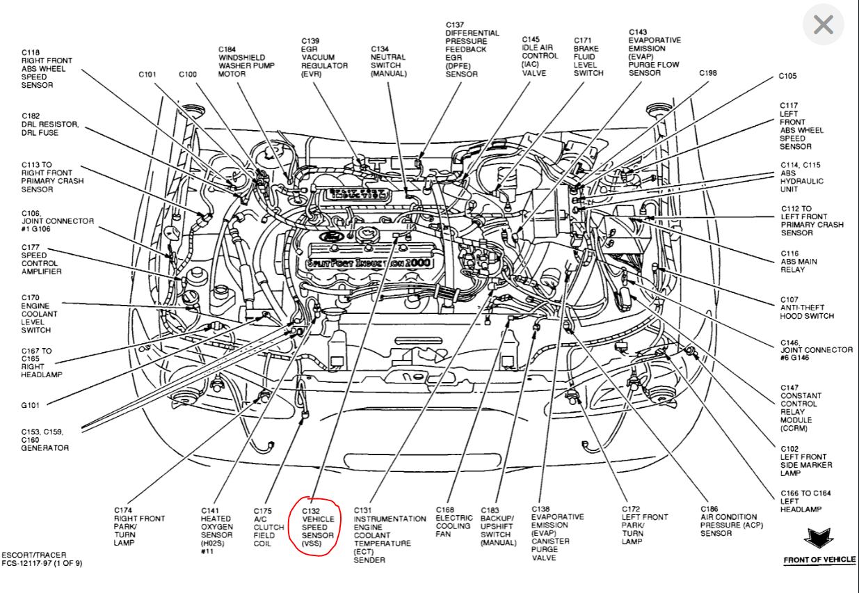 The Vehicle Speed Sensor is located at the lower rear of the transaxle (see diagrams).