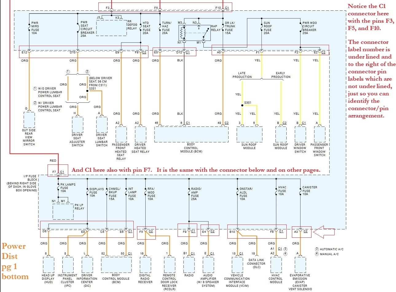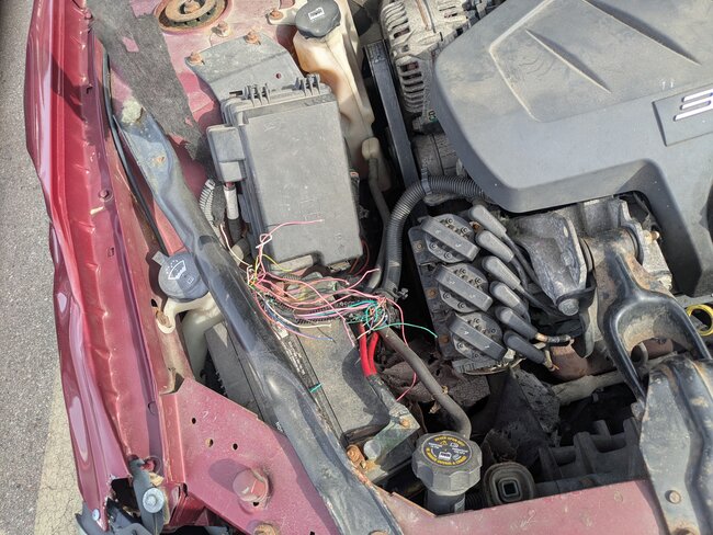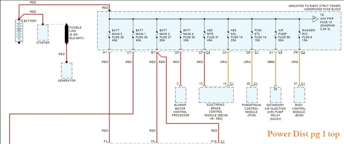 The 4 of the 6 Red wires run to the I/P fuse panel located on the right side of the dash behind the Glove box. To the C1 connector which we'll try to find the pinout for to make it easier to identify the wires.