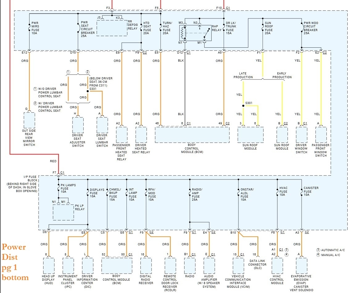 Here are the Power Distribution wiring diagrams, 1, 2- top, bottom, etc. There are many wires that are the same colors. So, you will have to trace each wire from its fuse to the broken section, and then do the same for the other broken half to its component.