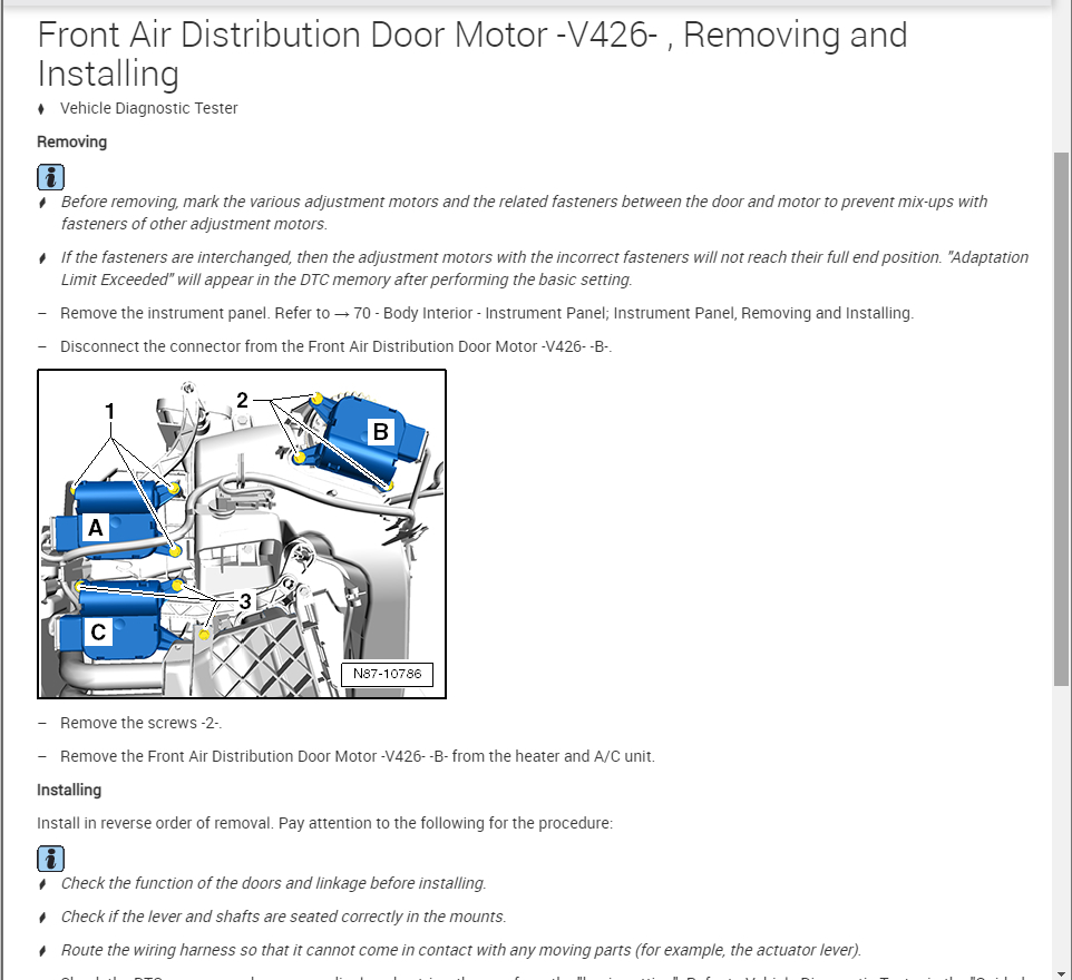 Normally this means the air distribution motor is the issue, but I am not seeing a separate motor for the outside and center vents.