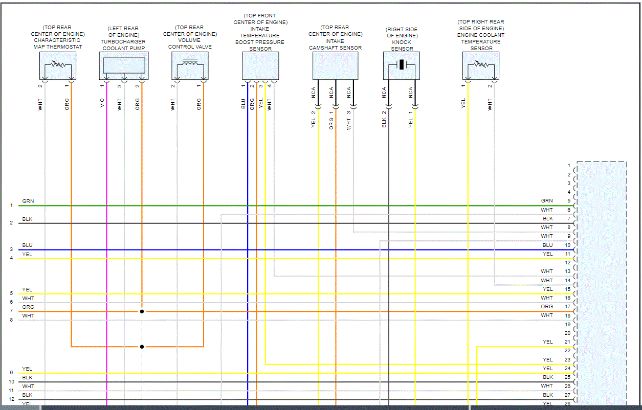 Below, I attached the entire wiring schematic for the powertrain management. I had to cut the pics in half to make them readable, but I did overlap them so you can easily follow from one to the next.