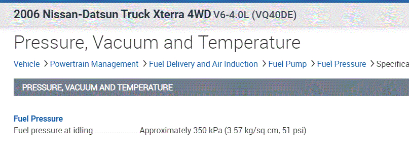 If you look at the attached pic, it provides the manufacturer's fuel pressure specifications.