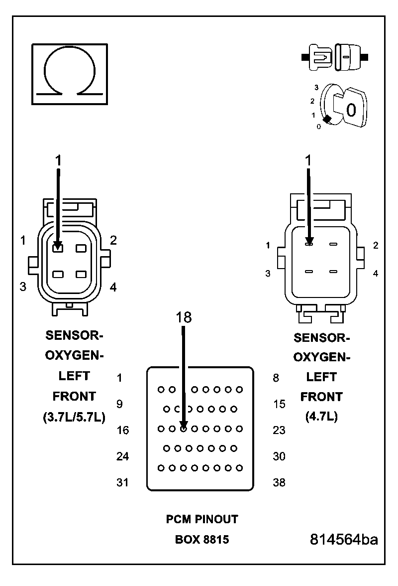 NOTE: O2 Heater Element resistance values should be measured at 70° F (21.1° C). The resistance value will vary with different temperature values.