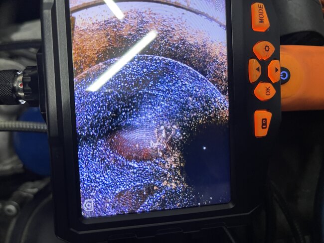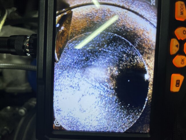 The idea that you may have a bent valve really isn't shown in these pics. Remember, since you have 30 psi compression, which indicates there isn't a bent/stuck open valve. Based on that information, I would suspect something is preventing one of the valves from fully closing.