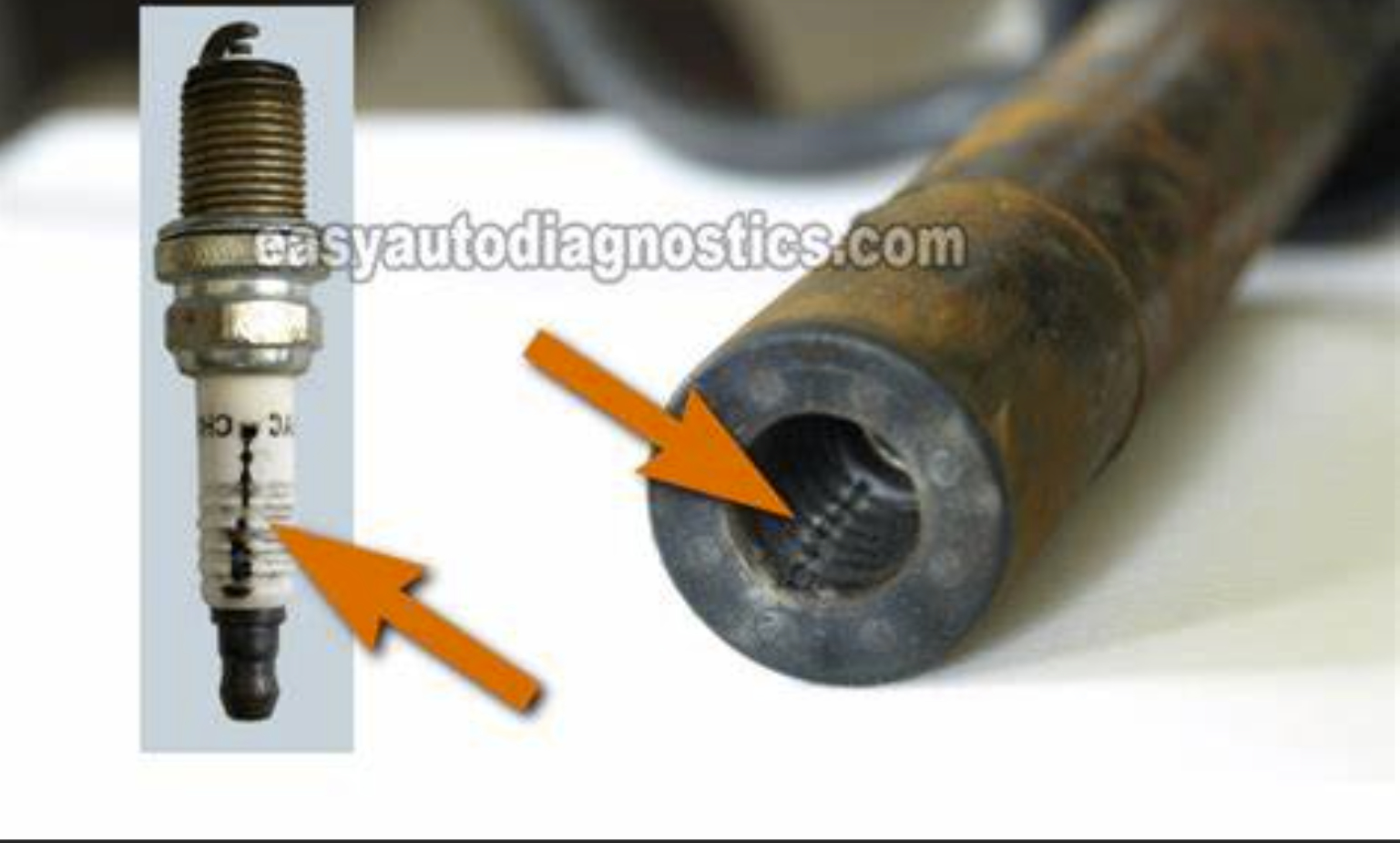While you have the coils off take a look at them for signs of something called carbon tracking. (I have added a picture as an example) If you see it therefore your cylinders are misfiring. It’s not that likely but remember we are eliminating possibilities, so we want to check it and rule it out.