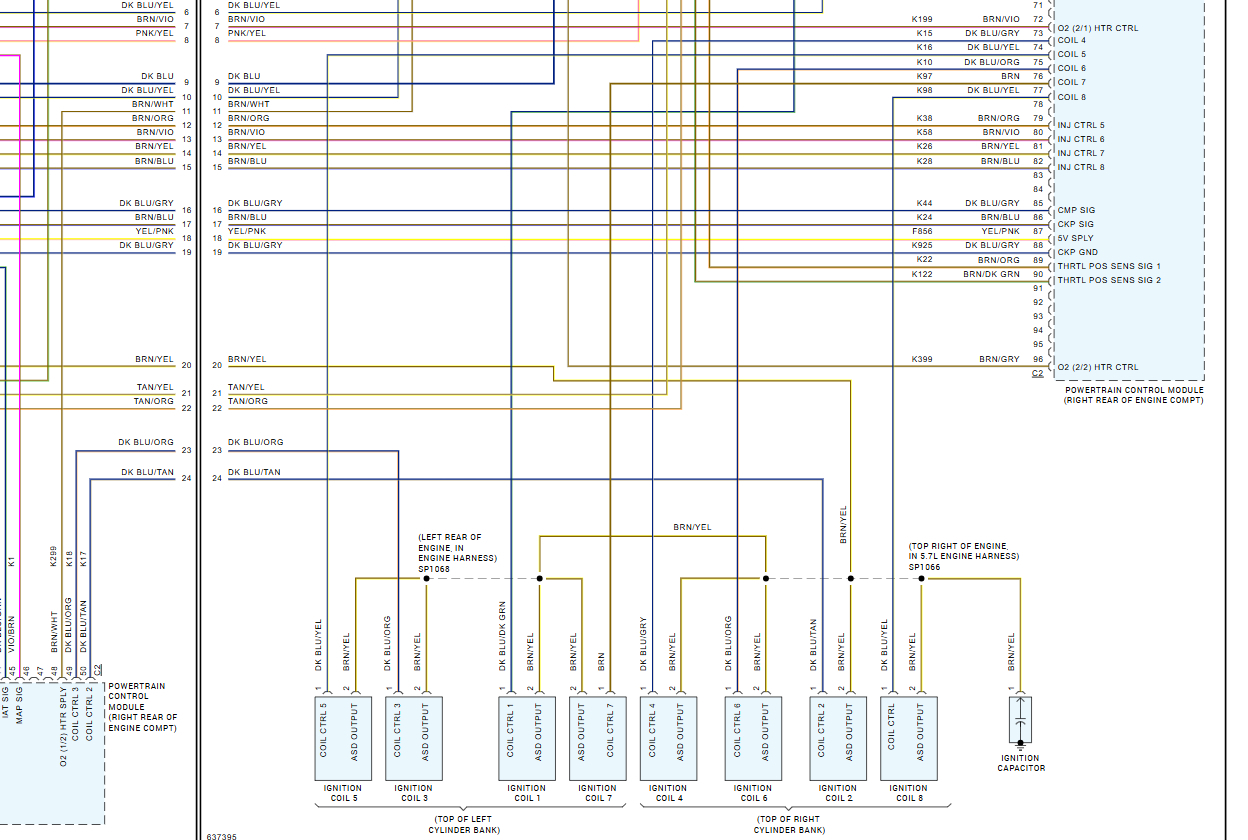 Recently, installed a new camshaft new lifters. Also, the MSD control solenoids made sure all deposits were removed from motor had a failed new lifter, which I replaced. Now, I have no signal from computer to some of the coils did not crush harness, but there is an open between coil connection and computer. So I need the pin out Diagram for the e c m. I have looked online and cannot find the correct diagram. And my closest dealer is 50 miles away. Misfire, on cylinder six and eight, and I require the proper e.C.M diagram to check for continuity to ignition coils. Thank you very much robert taylor