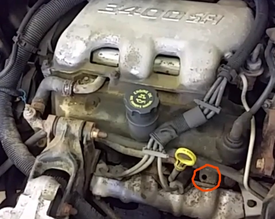I believe the air you are feeling isn't from that hole, if it is then you will at minimum need a new cylinder head as that is a blind hole that isn't used on that application of the 3.4 (it is used on other vehicles as a mount for a bracket) and should not be open to anything as the attached image shows the open hole as well. It is commonly used to attach a lift eye or a heat shield bracket in other applications. So first thing would be to determine if there is actually compression or exhaust coming out of that hole. If you put something in it like a piece of clay or just stuff it full of bread, start the engine, does it blow it out of the hole? If yes you will need to replace the cylinder head, which given the age and mileage I would suggest instead to replace the engine with a used one or a rebuilt instead. That is if the vehicle is in good enough condition.