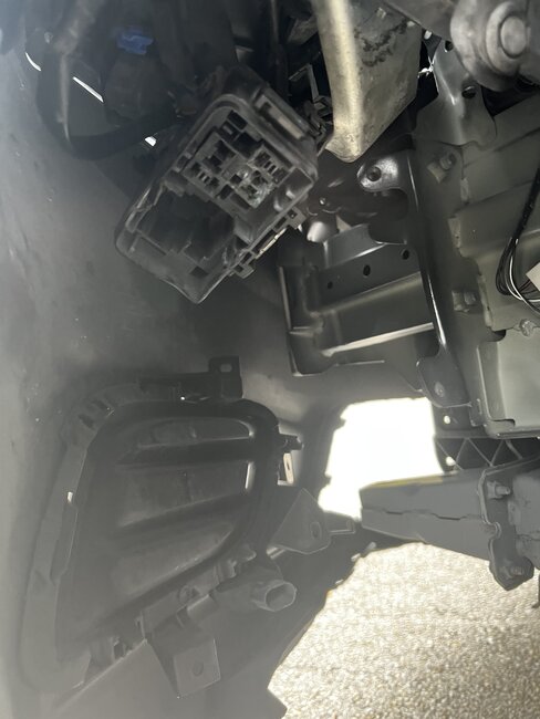 There is extensive damage to the front left headlight area of my car. I just bought a headlight wiring harness and attached new bulbs. However there is this box in the first image that is located kind of underneath the front left headlight. I need to know what piece plugs into that so I can order it. I also need to know where the wires are supposed to connect to in the second image.