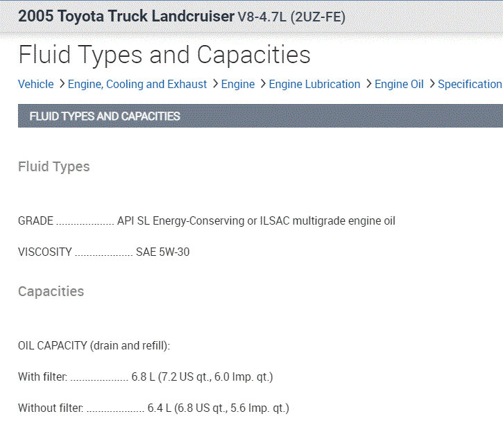 If you look at the picture below, it shows the oil type and capacity required for this vehicle.