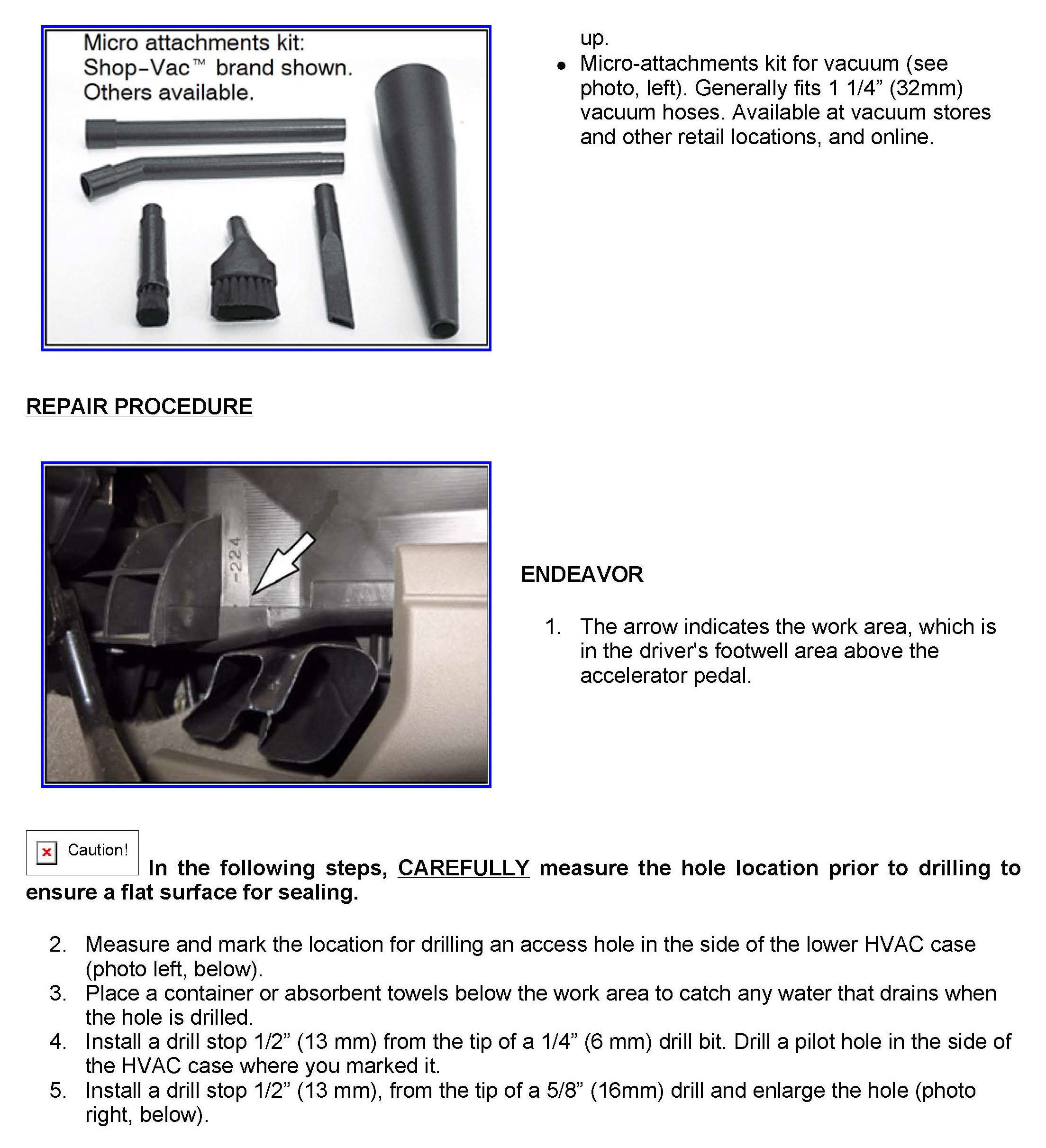 Vehicle Maintenance Filters A/C - Sloshing Noise From Dash/Water Dripping Onto Carpet