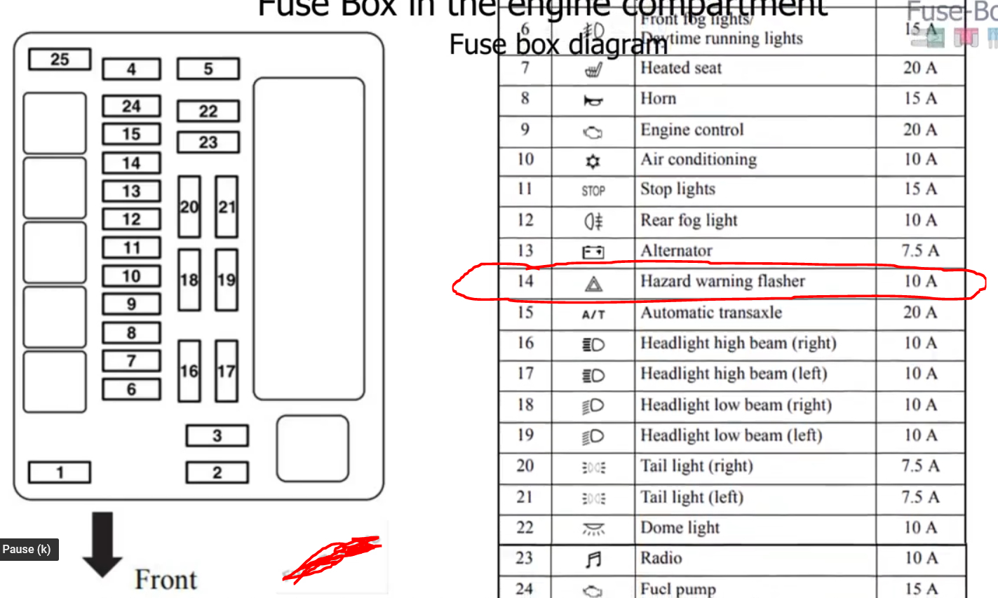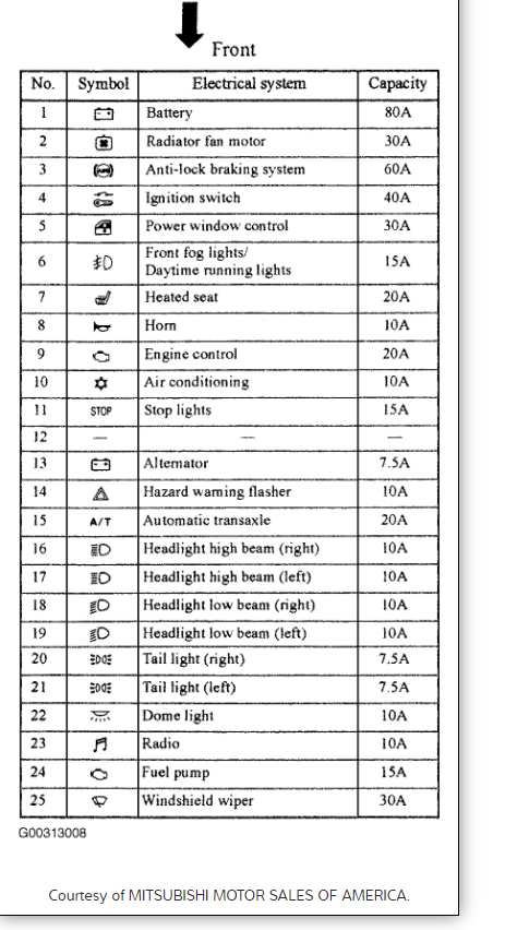 My blinkers and hazard signals we are not working on my 2006 Mitsubishi Galant ES. I replaced the 10A fuse for the hazards that is located in the fuse box under the hood by the driver side engine compartment.