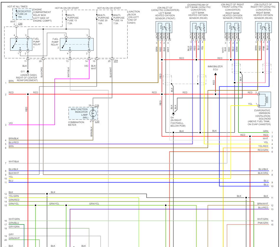 Does anybody know if this car is equipped with the emergency "power switch" to the fuel pump? I have checked all the fuses and the relays and they all are fine. The positive wire on the pump doesn't get any power. Any suggestions will be greatly appreciated. Spent a lot of hours searching for the electrical diagram for this car and so far no luck. Thanks everybody for any info.