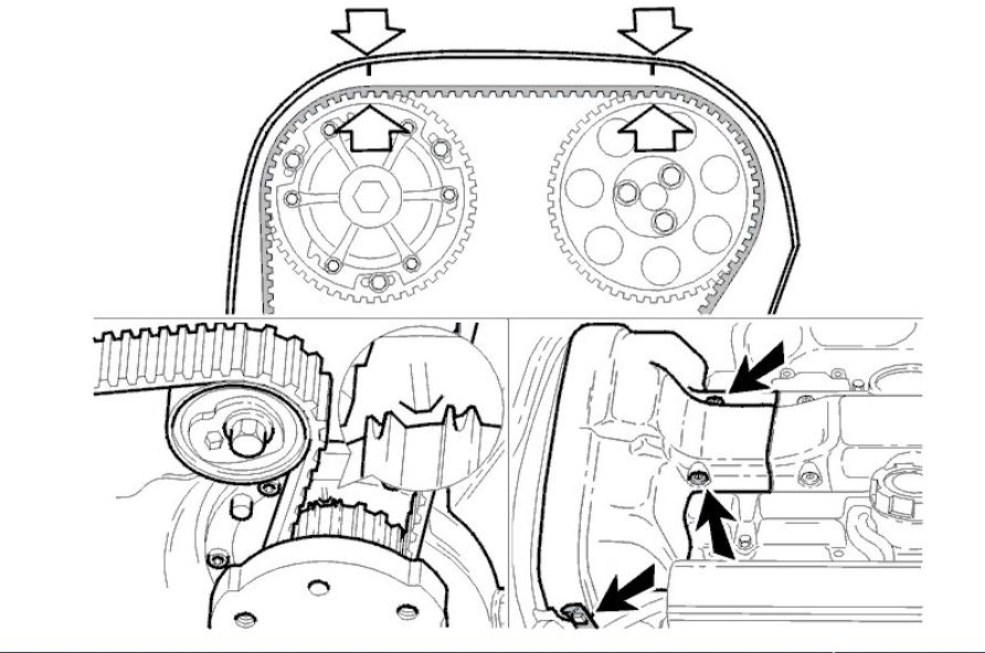 I attached the marks for your engine for proper alignment of the cams and crank.