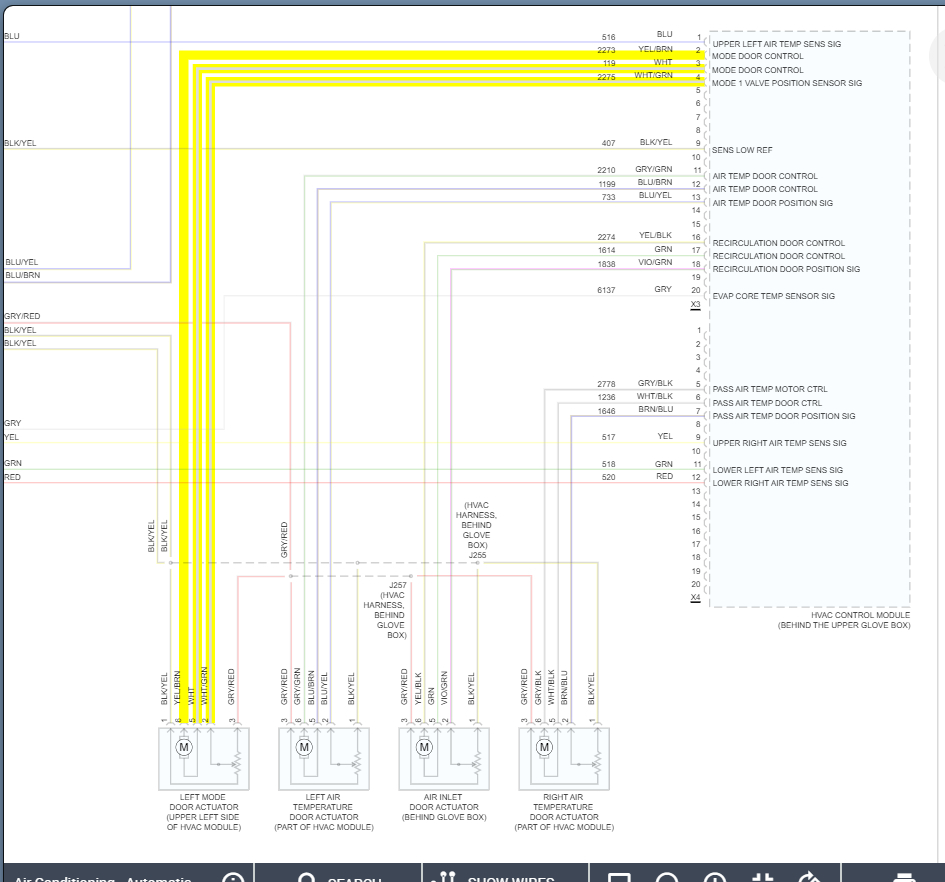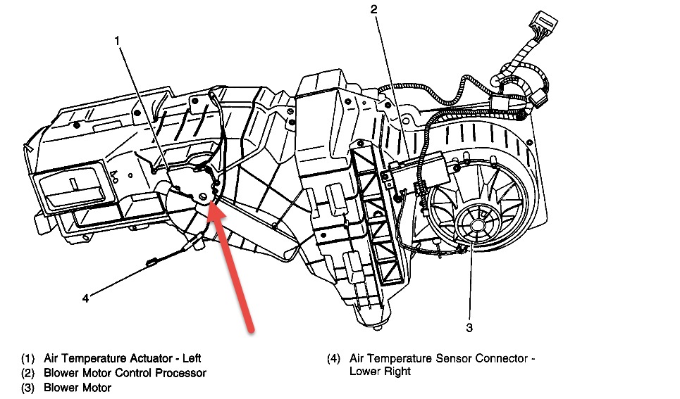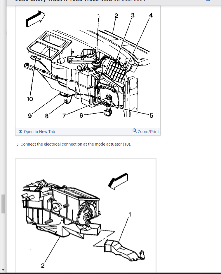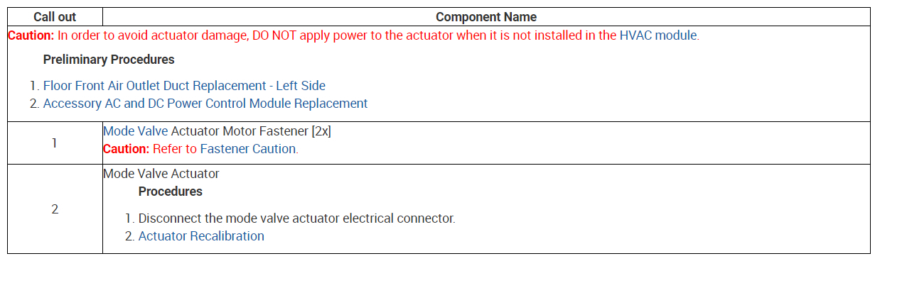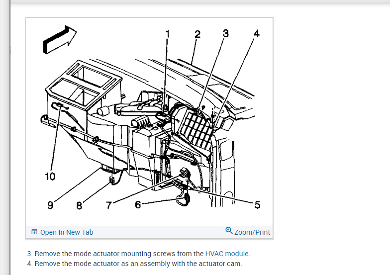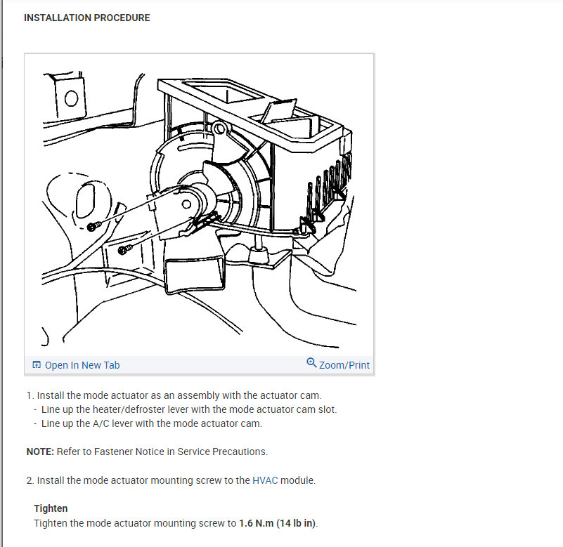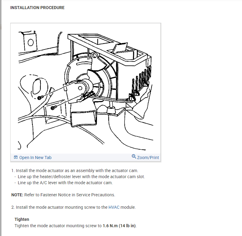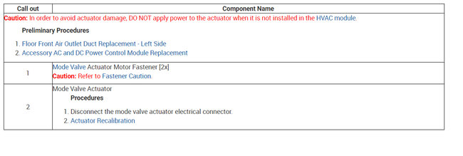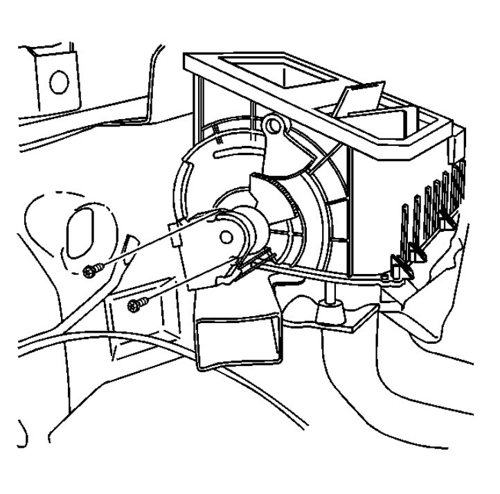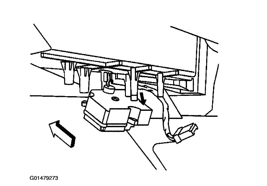 6. Remove the mode actuator mounting screws from the HVAC module.
