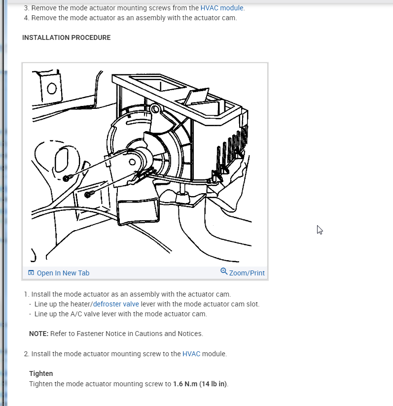 If you look at pic 1, it shows the location of the mode door. What I would like you to do is remove the actuator and check to see if it moves when you change air flow directions. Also, make sure nothing is disconnected or damaged.