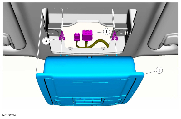 Install the overhead console. REFER to Section 501-12, Console - Overhead.