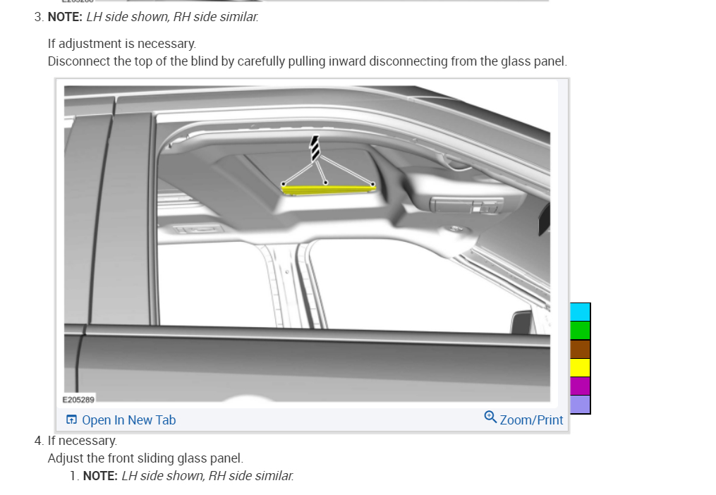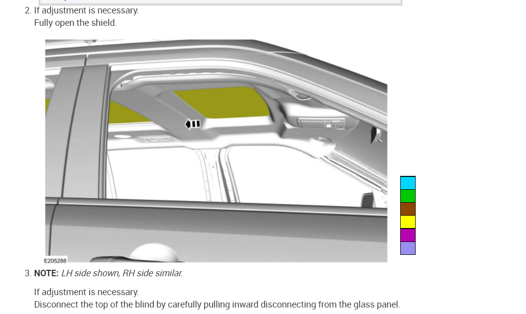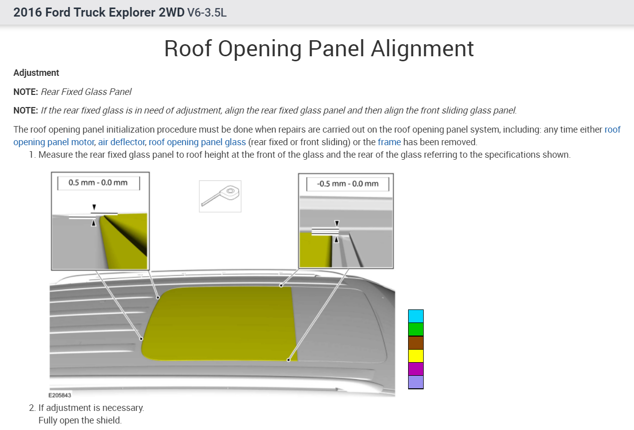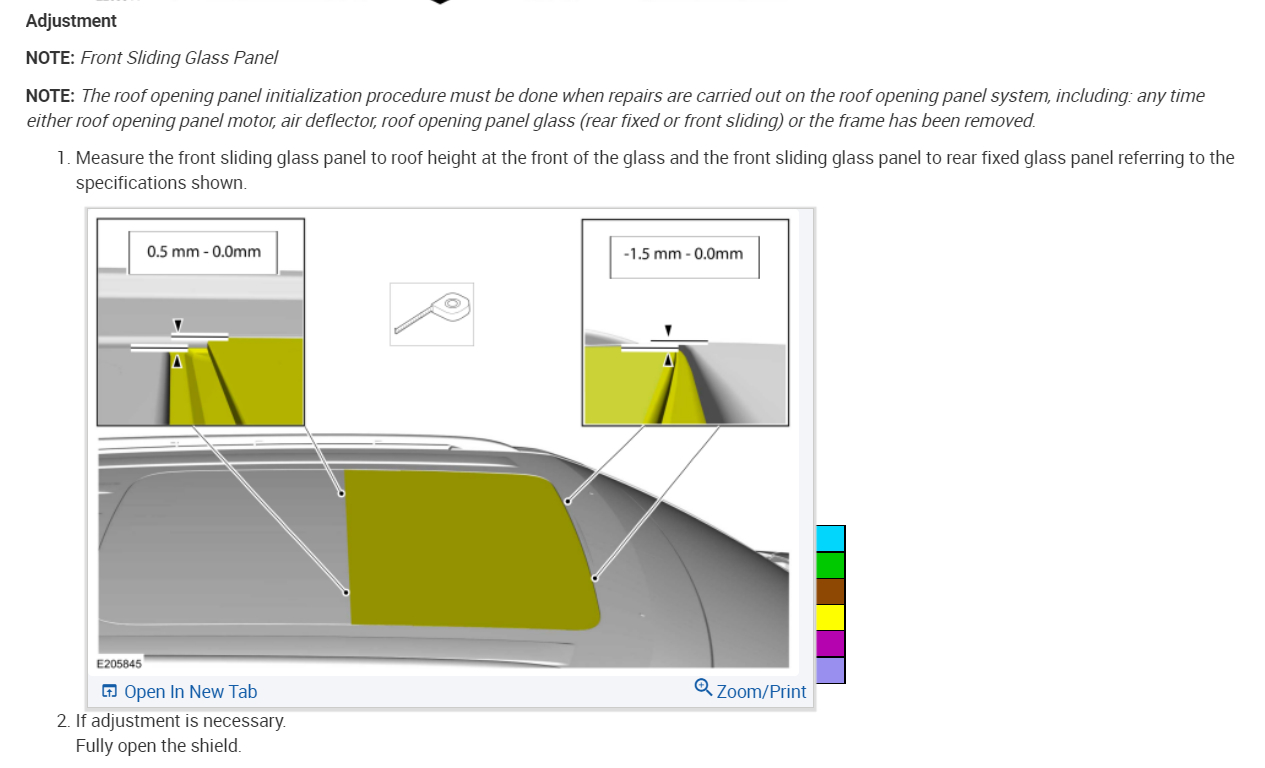 NOTE: The roof opening panel motor must be initialized when repairs are carried out on the roof opening panel system, including any time the roof opening panel motor has been removed, the roof opening panel glass (fixed panoramic or sliding) has been removed or adjusted, or if the roof opening panel frame has been removed.