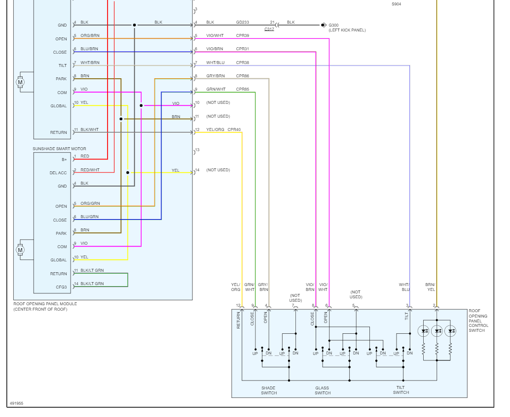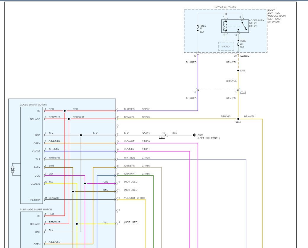 If this doesn't work you have a bad roof opening control module, here are the wiring diagrams so you can see how the system works. BTW did you check the #27 and Fuse #23 in the left side of dash fuse panel? There is an accessory delay relay which is interrogated into the BCM if you don't have power at fuse #23 with the key on. Check out the images (below). Please let us know what happens.