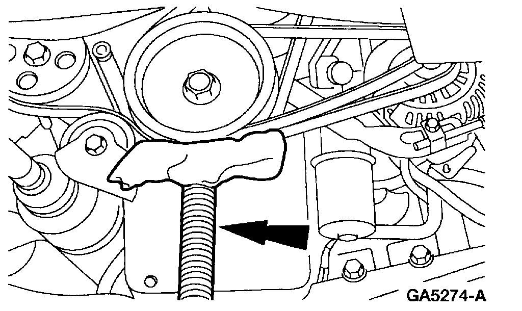 5. CAUTION: Cover the screw-type jack with a shop rag to prevent damage to the crankshaft pulley.