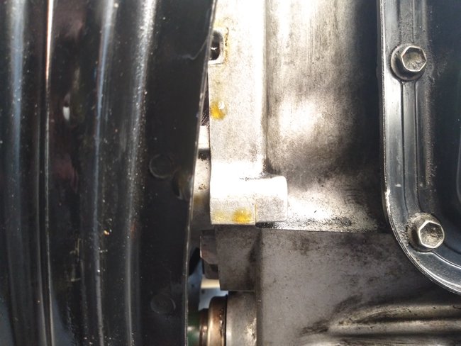 Hi, I recently did some engine work on my car listed above.I installed some bearings. When I put everything back on and added its oil, transmission fluid, and coolant, I go and started up and everything seemed fine until a friend of mine told me to stop the engine. So I did and he told me to look under the car and there it was a oil leak. Now I am not talking just a few drops am talking more long almost like if I was draining the oil. It was coming down between the engine and transmission so I thought it was the rear main seal. So I took replaced it but it still leaking from the same place. What can it be?
