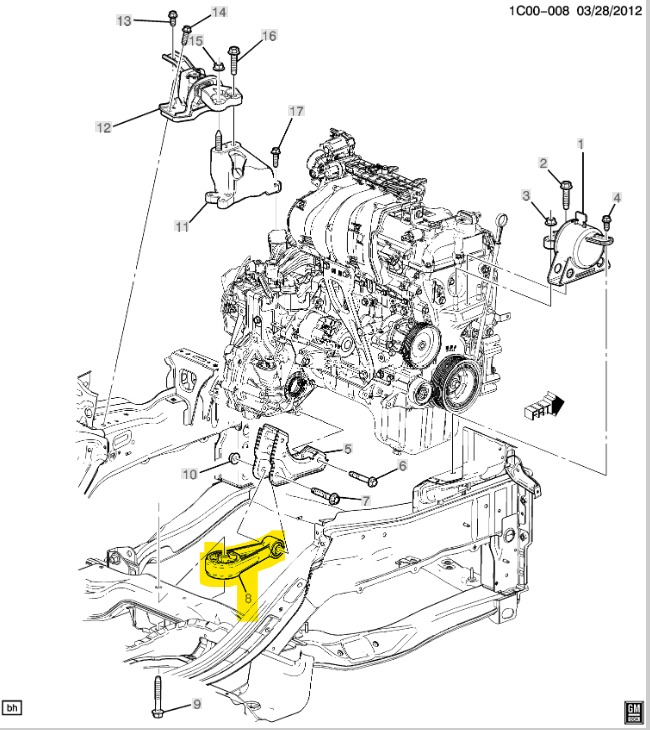 I am also sending an image of all the mounts showing their position. It may not be exact but the areas in which they are located should be about the same. I am wondering if another mount went and caused extra strain on this particular area.