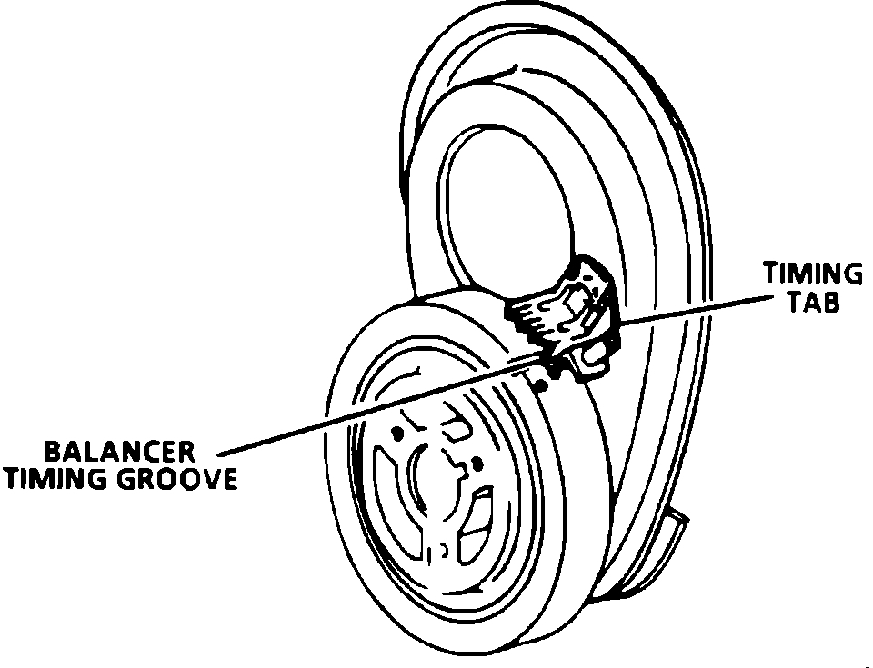 Connect timing light and adjust as necessary by loosening hold down bolt and rotating distributor. For specification, refer to SPECIFICATIONS/TIMING MARKS. Tighten hold down and recheck the timing. Stop the engine and connect SET TIMING connector. Clear ECM trouble code by disconnecting ECM power source. With engine at operating temperature, drive vehicle at part throttle with moderate acceleration and decelerate to idle condition. This will "teach" the ECM/VCM and return the engine to normal performance.