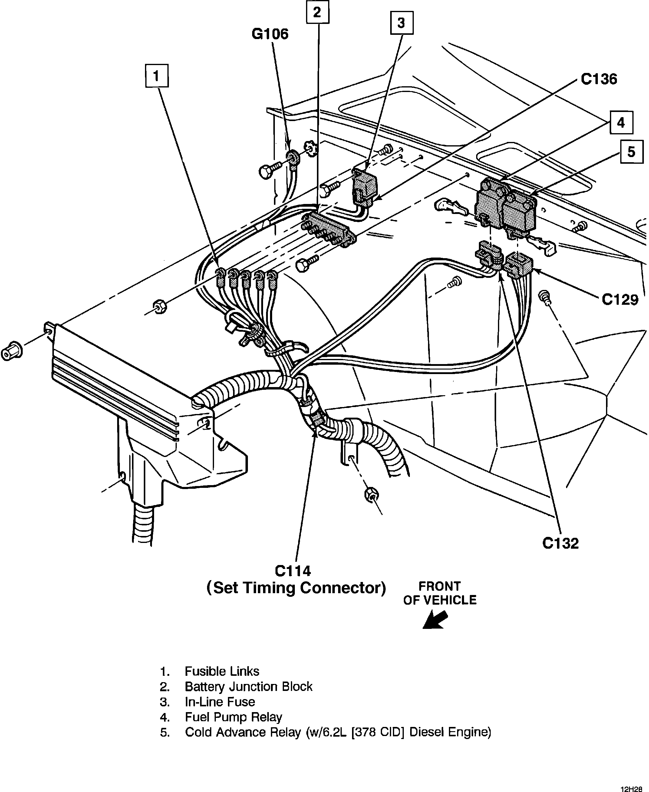 Disconnect SET TIMING connector (C114, tan/black wire) located in center of cowl, under battery junction block cover. DO NOT disconnect 4 wire connector at distributor.