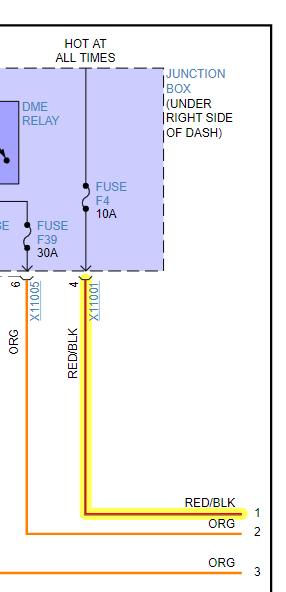 Use a 12-volt light bulb to load test power circuits, see if they can carry current. You need to if these 3 pins are getting power (load tested) and if those grounds are good. From the battery all the way to the dme.
