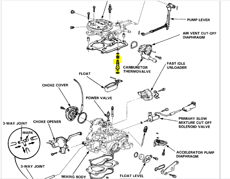 If you look below, I highlighted the needle and seat. If you take the top of the carburetor off, you will see where the float is attached. As fuel enters the carb, the float raises and presses on the needle and seat. Once it reaches a specific height, the needle seats, and no more fuel enters the carburetor.