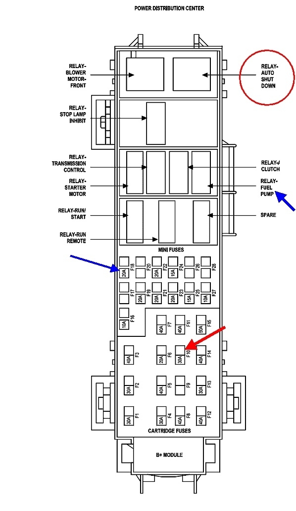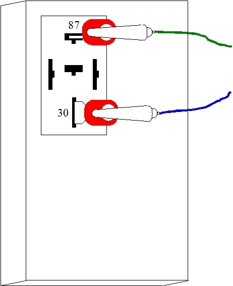 Remove the ASD relay, then stick in a pair of crimp-style universal spade terminals into terminals 30 and 87. Those correspond to the relay's contacts. You can use other things like paper clips, but be careful that whatever you stick in isn't fatter than the relay's terminals. A lot of future intermittent connections have been caused by spreading the terminals in the socket from inserting something too fat. For my own use, I soldered a Dodge Viper rear tail light harness to a blown fuse. The fuse is easy to insert, and the harness allows me to add from one to five separate bulb filaments, depending on how much current the circuit normally draws. An added advantage to that long harness is it can be hung over the rear-view mirror so it's easy to see from anywhere outside the vehicle.