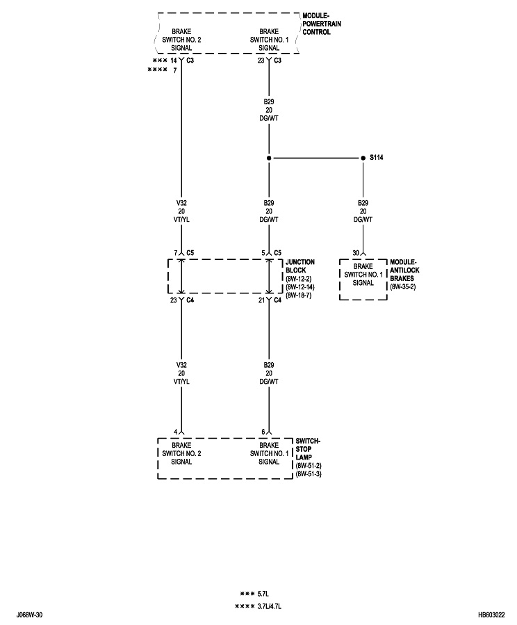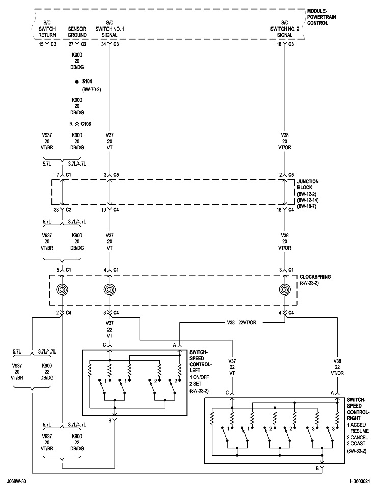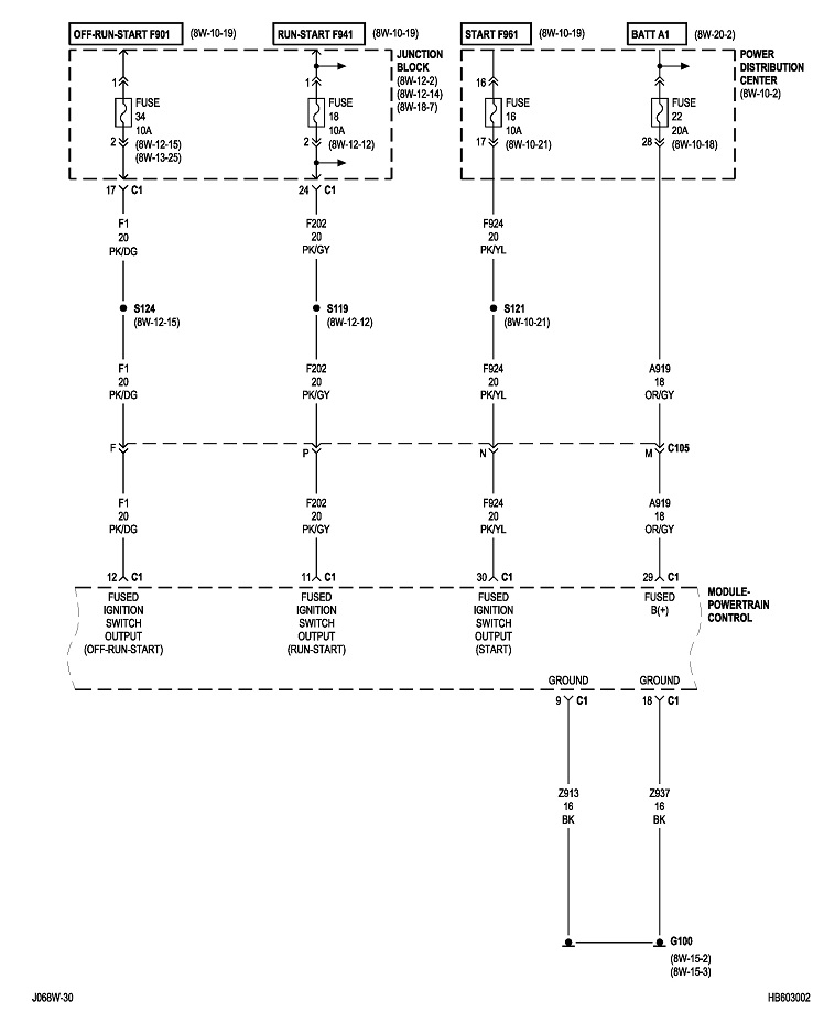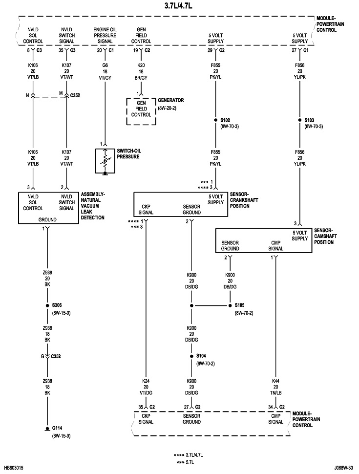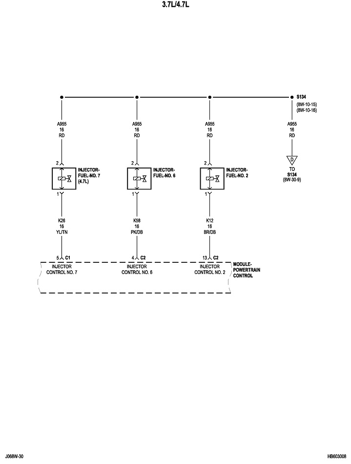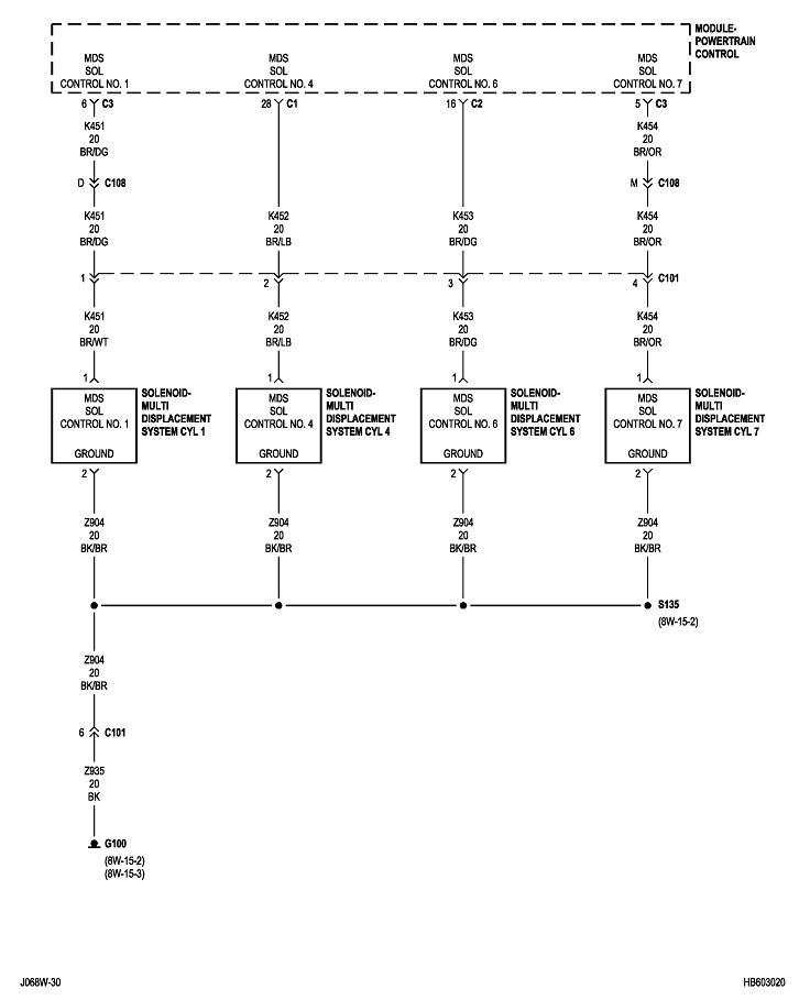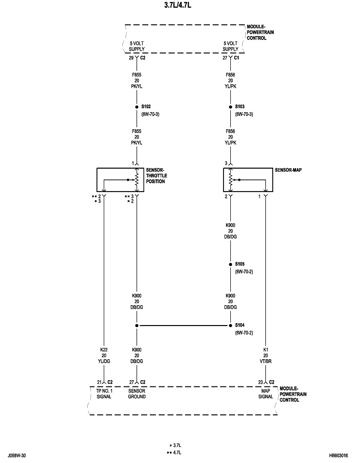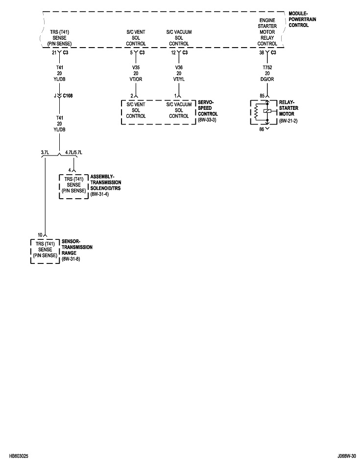 You can do this same procedure by replacing the fuse with the test bulb. For example, large 30-amp fuses often feed multiple smaller fuses that each protect their own circuits. When you get the short to occur, remove each smaller fuse, one at a time, until the short goes away. Once you identify that fuse, put the test bulb in place of that one, then continue on the same way. It can help to know what is on a fuse's circuit so you know what to unplug or inspect. I'll post the diagrams for "Powertrain Management" later. It will take some time to format them for uploading.