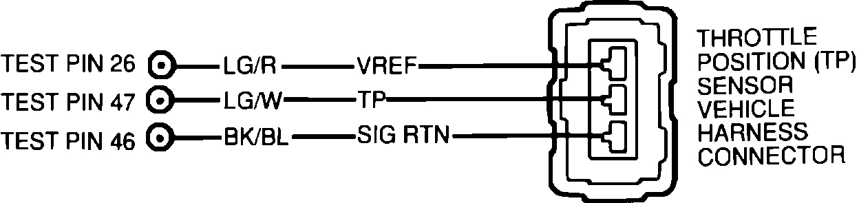 NOTE: If the voltage is not within specifications, adjust the Throttle Position Sensor (TP) as follows: