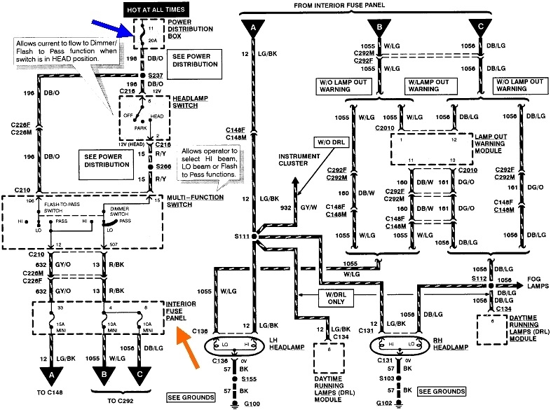 Here's the entire head lamp diagram without automatic lights. The 20-amp fuse is shown as number 11, but on the chart, head lamps isn't listed for that fuse, so there is already some confusion.