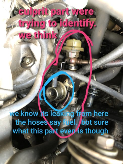 Hello again, I'm back but this time for my moms van. She called me the other day and said that her van just stalled on her and that her RPMs were jumping all over the place, but later that day it cranked right up and no problems. Then yesterday on her way to bring home my kids she said it was doing it again then called me histaricall and said to meet her at one of the gas station at the interstate with a fire extinguisher that her van was on fire she thought. A gentleman helped her until I got there but he told me that the hood was too hot to open at the time when he got there. By the time I got there I got the hood popped, there was no fire just a lot of smoke and there was what looked to be oil on the ground and some sprayed around under the hood. She said that her RPMs were all over the place again before during and after all of this too. Now me and my husband both have looked and can see what looks to be oil coming from a spot under the hood (I'll attach a photo ) other than this I'm at a loss. My husband and myself know nothing about this vehicle kinda learning as we go, so I have no idea that the part is that is the images. We cranked it up after all if this and no problems other than the RPMs. Thank you for your time once again and look forward to hearing from you.