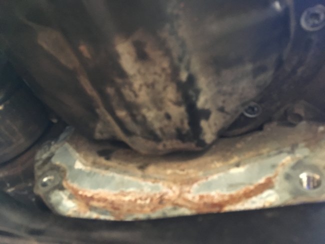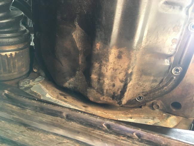 If your pan has damage on the bottom from hitting something, a steel pan will bend or dent. A cast pan will crack, and while you might see a crack that is big enough, it will almost surely have spread where it is too small to see, but oil will continue to seep through it. Do not waste your time trying to fix it with some chemical. Your sanity is too valuable. Most people understand there cannot be any oil residue because that will prevent chemicals from adhering, but most of us do not realize that aluminum is one of the fastest-corroding metals we use on cars. When it oxidizes, that aluminum oxide actually acts as an insulator that prevents further corrosion, but when you scrub the area to be patched, (or welded), you only have a few seconds to do your thing before more corrosion forms right before your eyes. To prove that to yourself, take a chunk of aluminum and put a deep scratch in it. You will see how amazingly shiny it is in that scratch, then it will become dull right before your eyes. Any glue or patch you apply is going to adhere to that aluminum oxide which does not adhere well or seal. To avoid that heartache and frustration, just replace the pan if it is damaged.