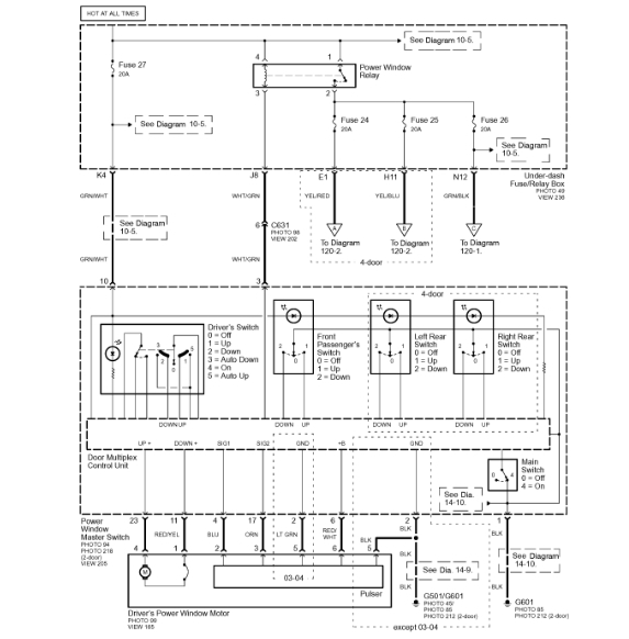 My driver side window will not roll down when I press the switch nothing happens it only goes down when it is really hot outside. Now the back door stopped working a few days ago. When I press the switch on that side it does a clicking noise but will not roll down.