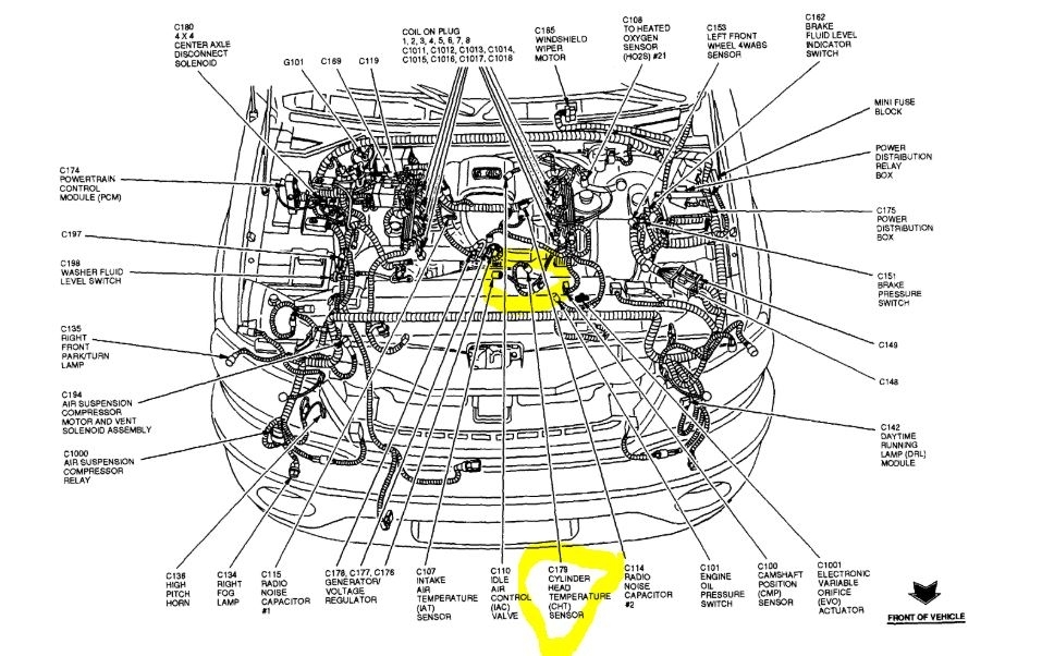 There is a sensor for the engine temperature on the front of the driver's side head.