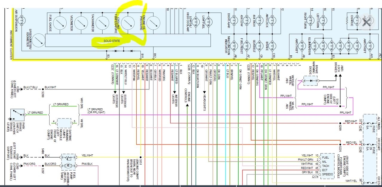 I tried a used cluster that was working in the other truck and it didn't fix problem. Then I jumped the two wires at the engine cooling sensor and the gauge pegged to hot so I assumed the wiring was okay.