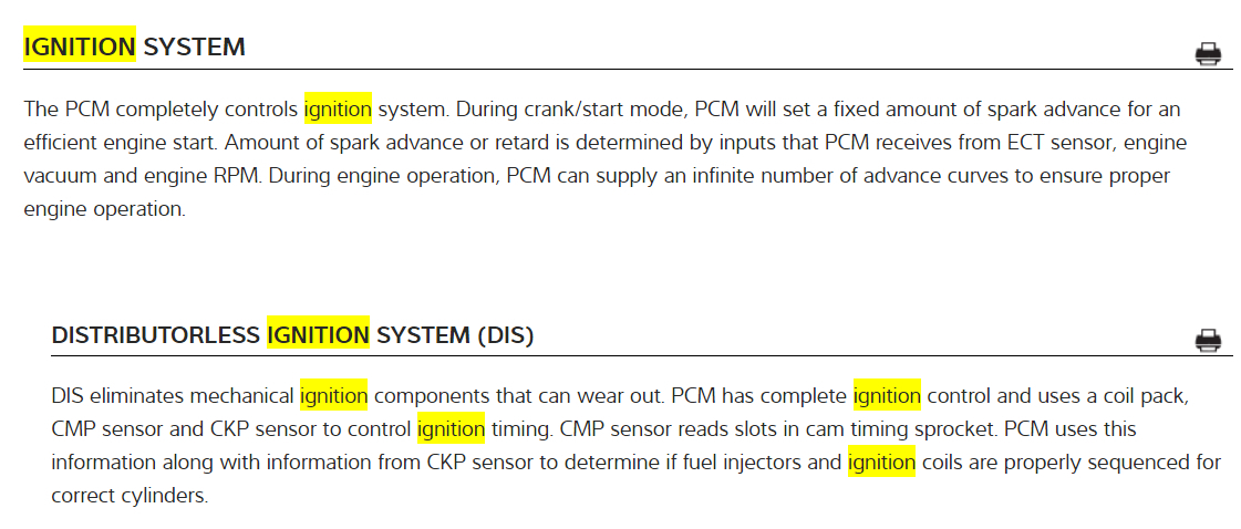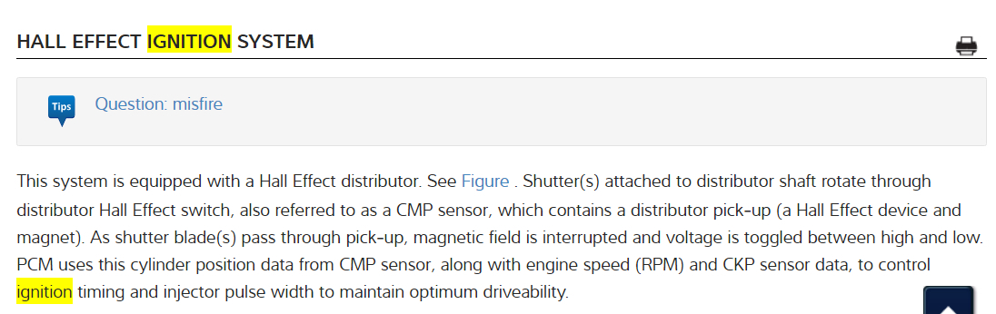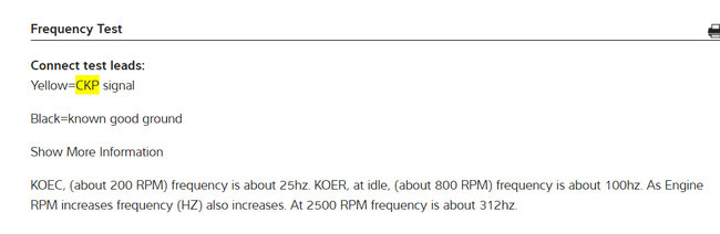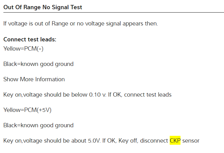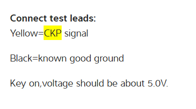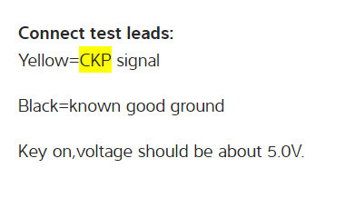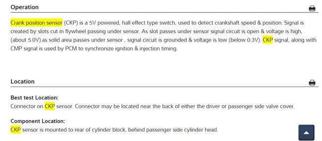 I have included in the diagrams below a description of your vehicle's ignition system, basic ignition testing, and testing guide for your CKP sensor. Please go through them and get back to us with what you are able to find out.