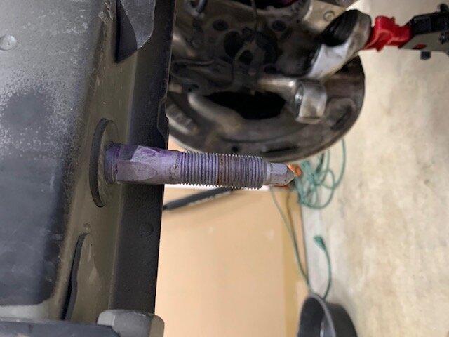 I'm attaching pictures of the current (non broken) bolt and pictures of the new front fender apron that it goes into.