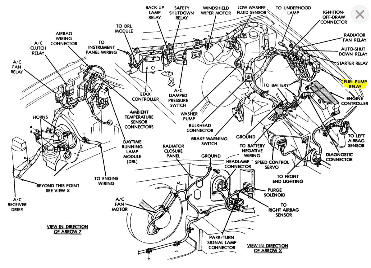 The fuel pump relay is located on the rear right hand side of the engine compartment, if you are facing the engine (see diagram below)