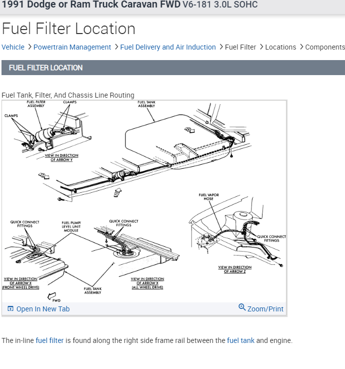 The in-line fuel filter is found along the right-side frame rail between the fuel tank and engine.