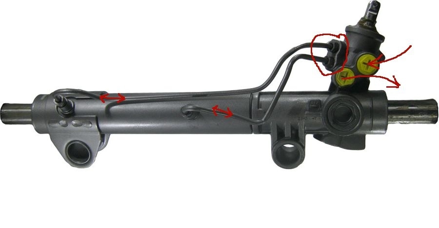 If you mean where the lines come out near the steering shaft input there are passages inside that direct the fluid into the steering valve. The other end of those lines goes to the opposite sides of the piston in the rack that provides the assist. So yes they are hollow in places.
